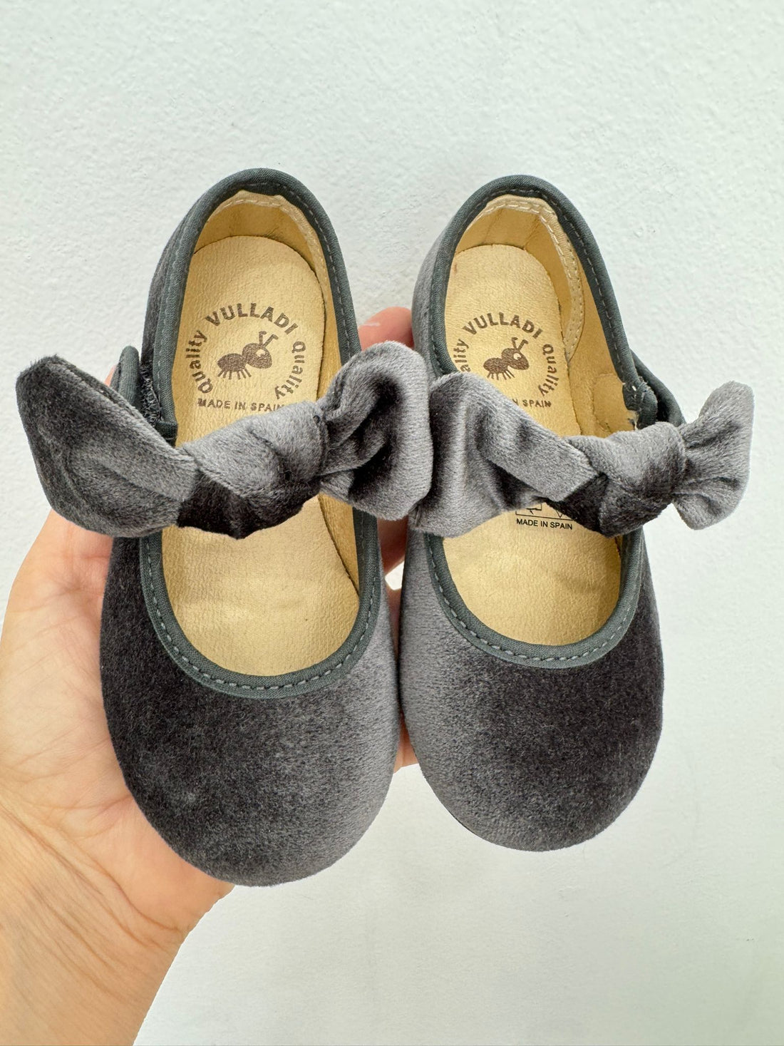 Scarpine eleganti in velluto grigio per bambina, impreziosite da un raffinato fiocco tono su tono....