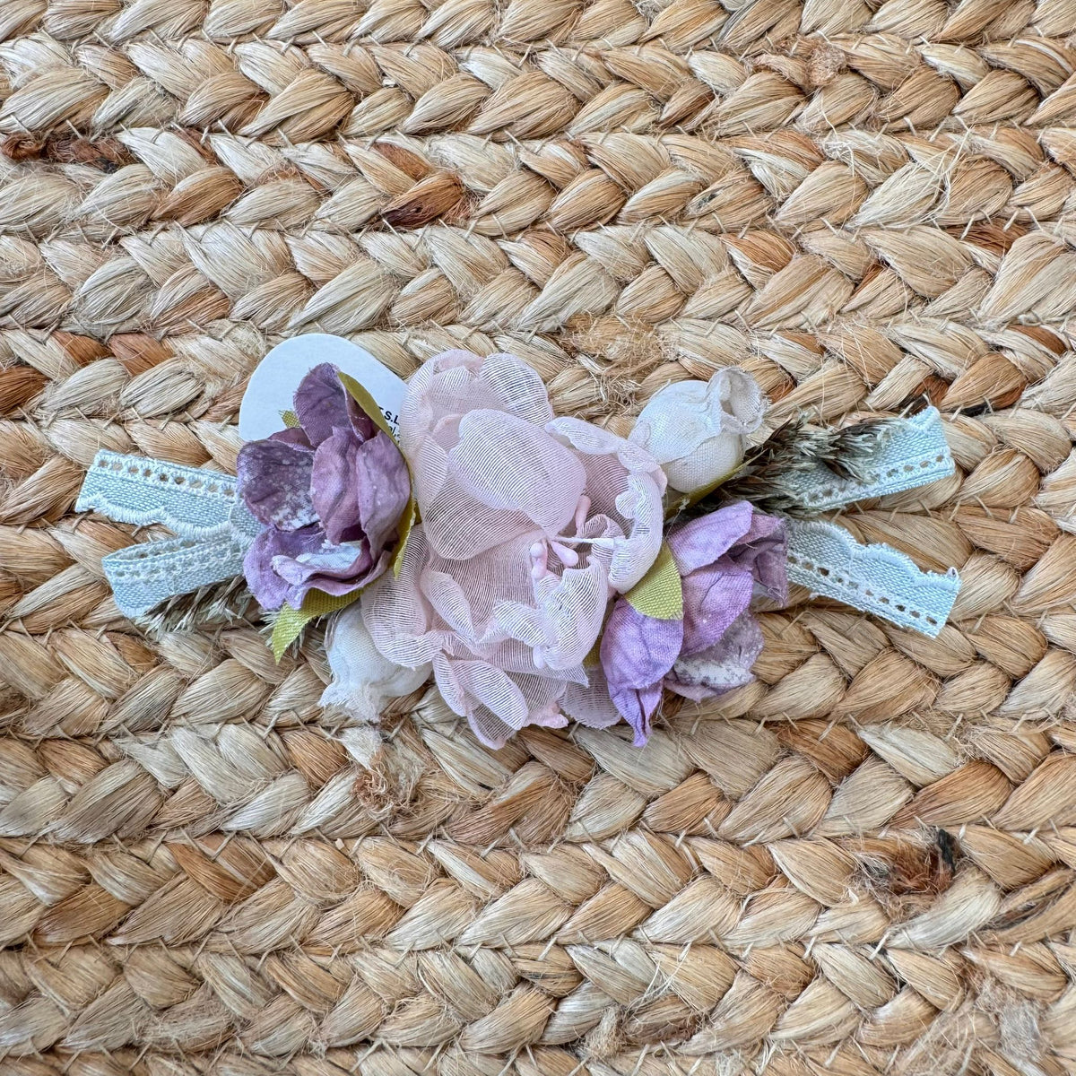 SPILLA FLOREALE LILLA E ROSA CON PIZZO -