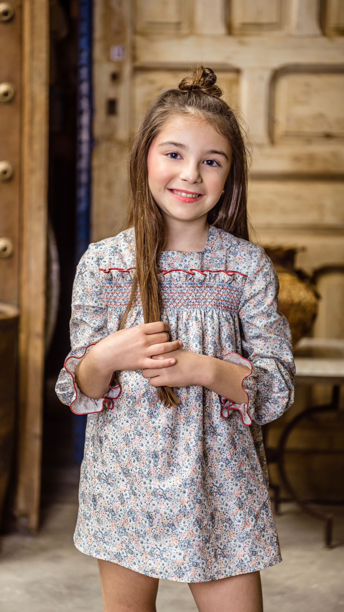 Abitino autunnale floreale con punto smock e dettagli raffinati -