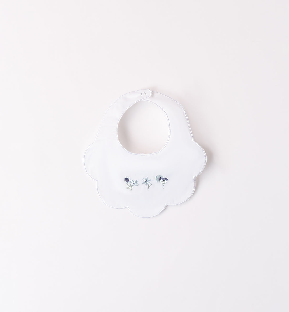BAVAGLINO NEONATO BIANCO CON RICAMO AZZURRO