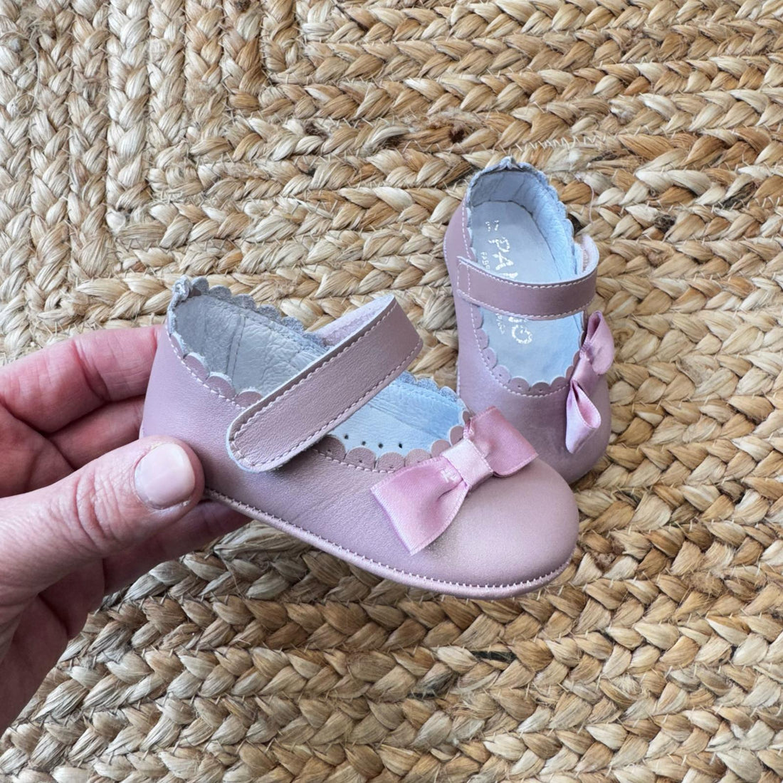 Scarpine eleganti per un battesimo indimenticabile! Realizzate in pelle rosa cipria, queste scarpe da battesimo...