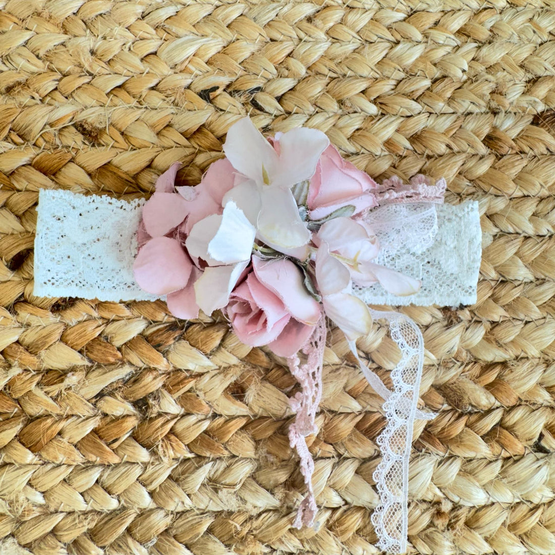FASCIA BATTESIMO IN PIZZO ELASTICIZZATO CON FIORI ROSA - MIMILU