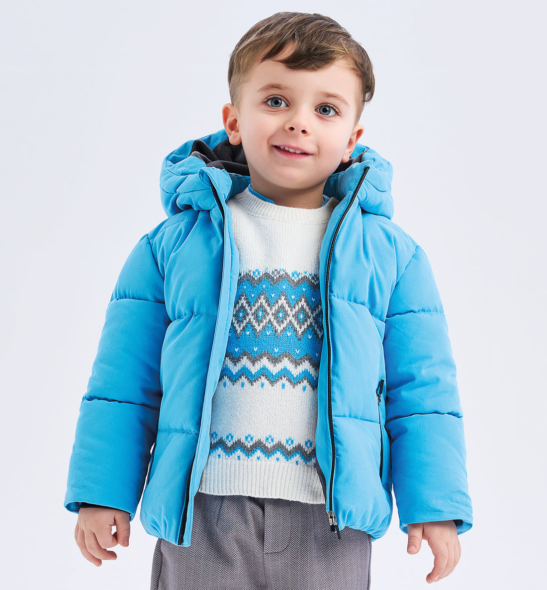 Un giubbotto morbido e caldo, pensato per accompagnare i bimbi nelle giornate più fredde. L’azzurro...