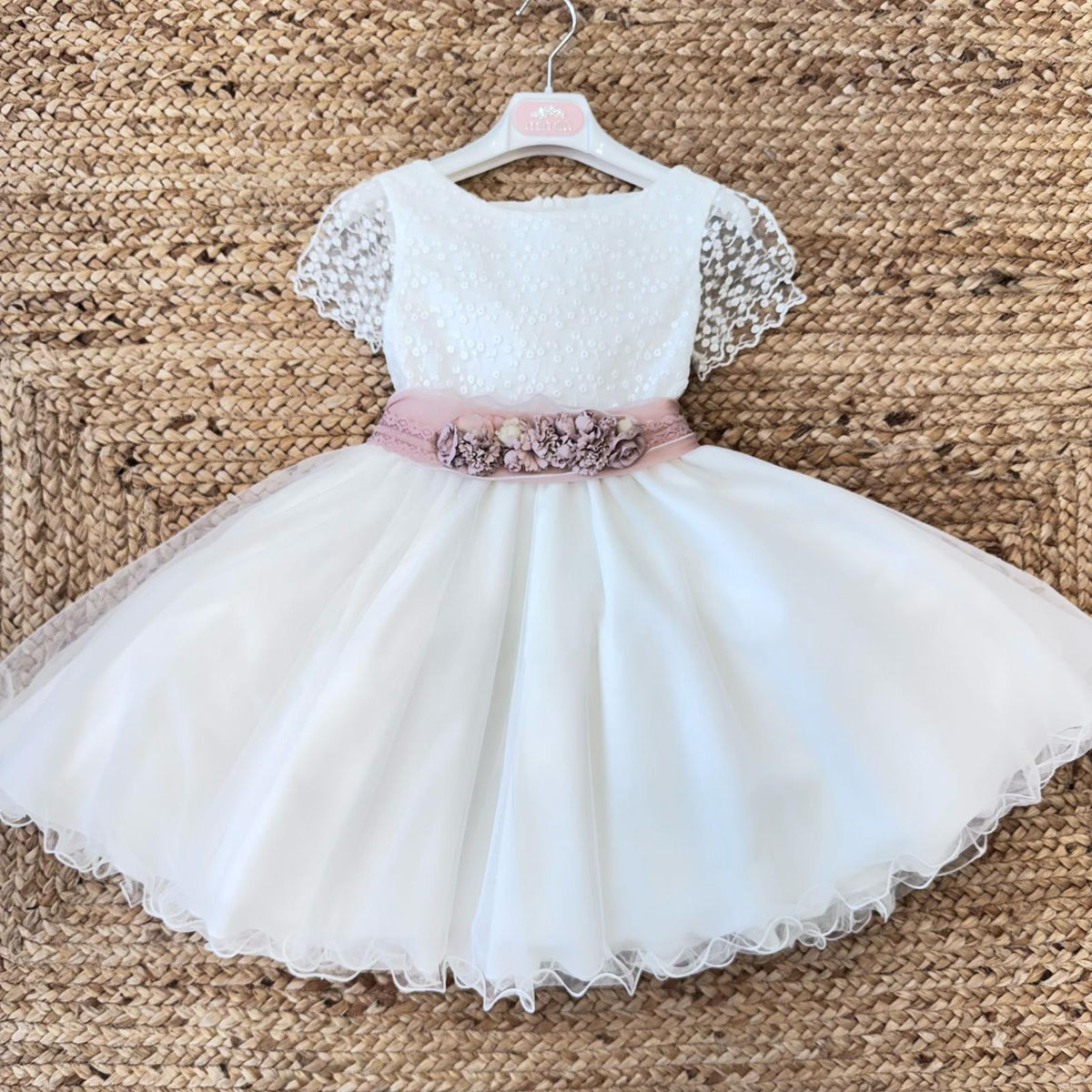 ABITO DA CERIMONIA BAMBINA AVORIO E ROSA CIPRIA β PERFETTO PER BATTESIMO E OCCASIONI SPECIALI -