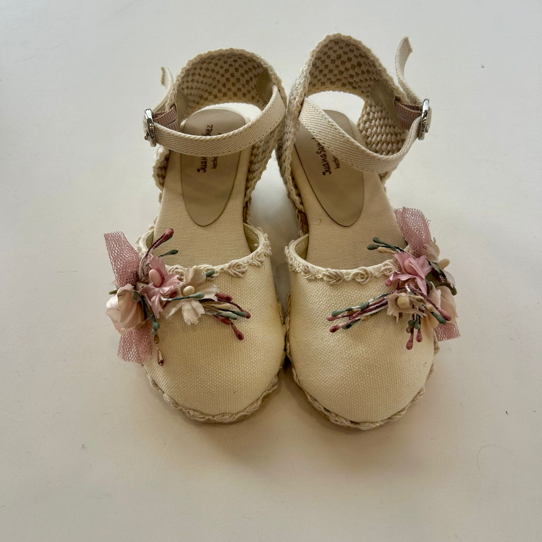 Un'elegante espadrillas perfetta per le occasioni speciali, realizzata in tessuto di pizzo avorio con dettagli...