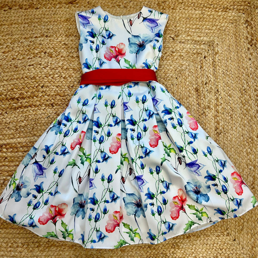 Abito bambina floreale con fascia rossa