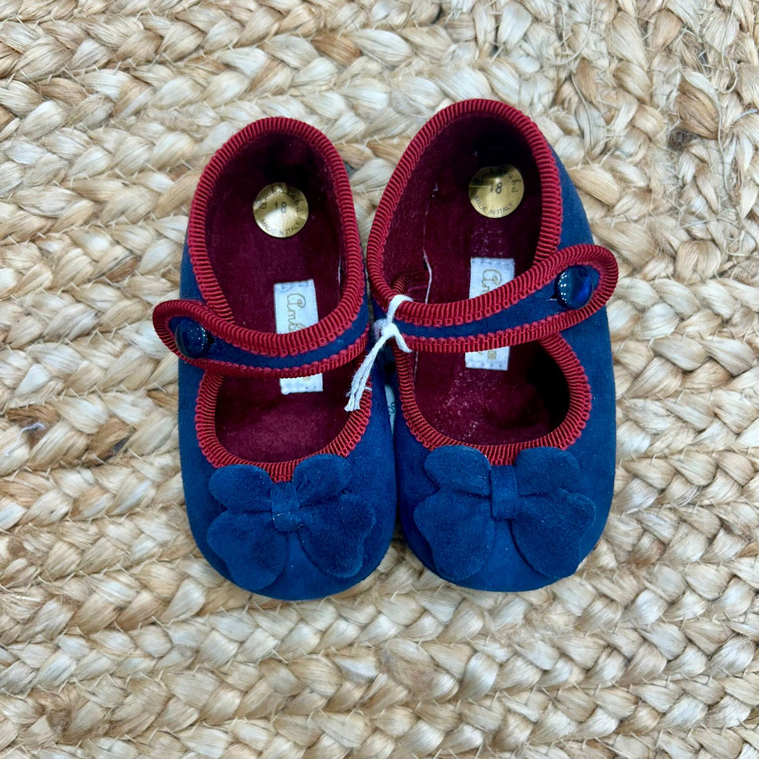 Scarpine culla bimba velour blu con fiocco