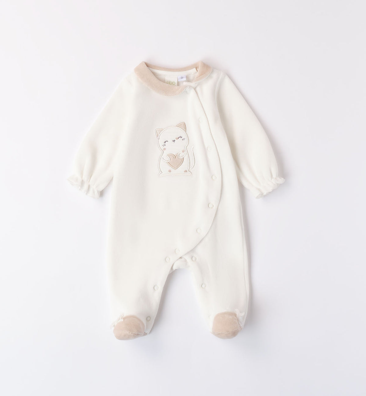 Tutina neonato ciniglia bianca con colletto e piedini blu -