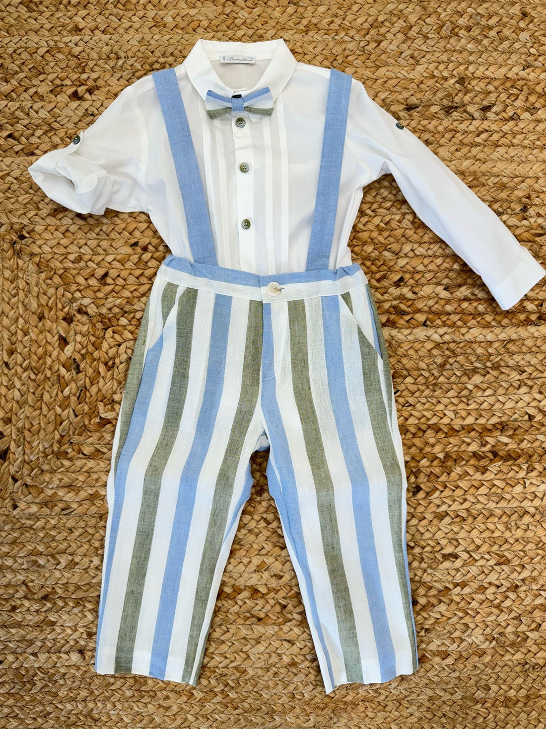 Completo bimbo con pantaloni a righe con bretelle barcellino