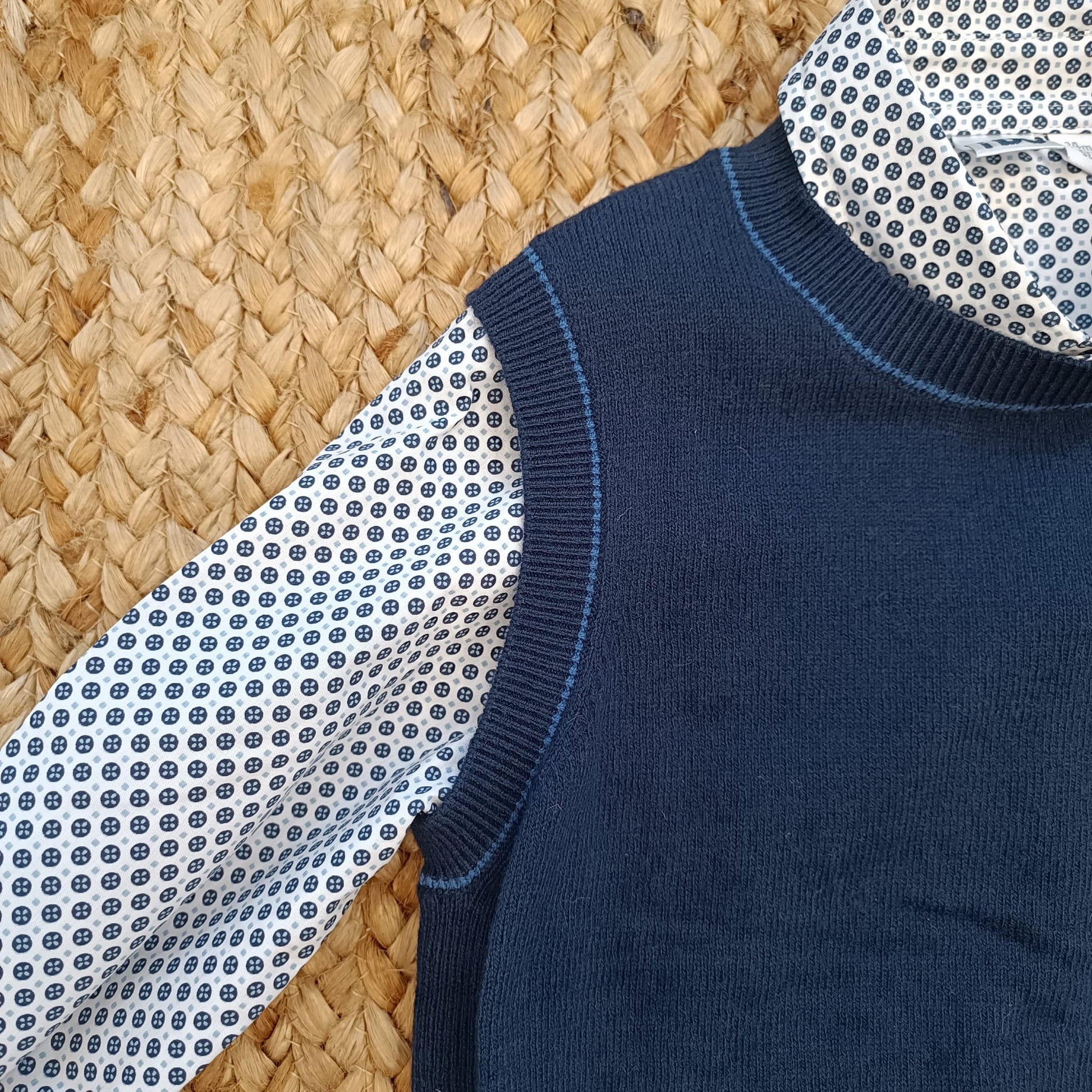 Completo Bambino Con Gilet In Maglia E Camicia In Cotone A Fantasia I-Do