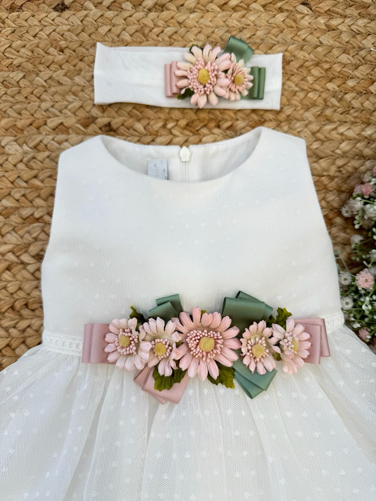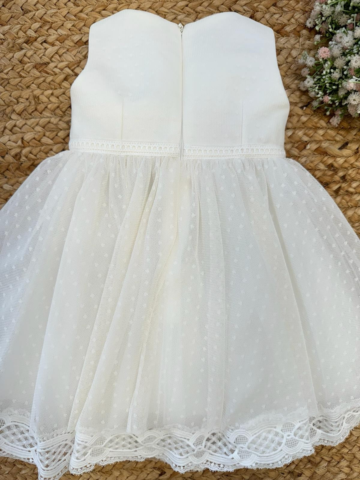 Abito In Tulle Con Orlo In Pizzo, Spilla Fiori