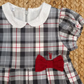 Abito natalizio bambina scozzese grigio con fiocco rosso