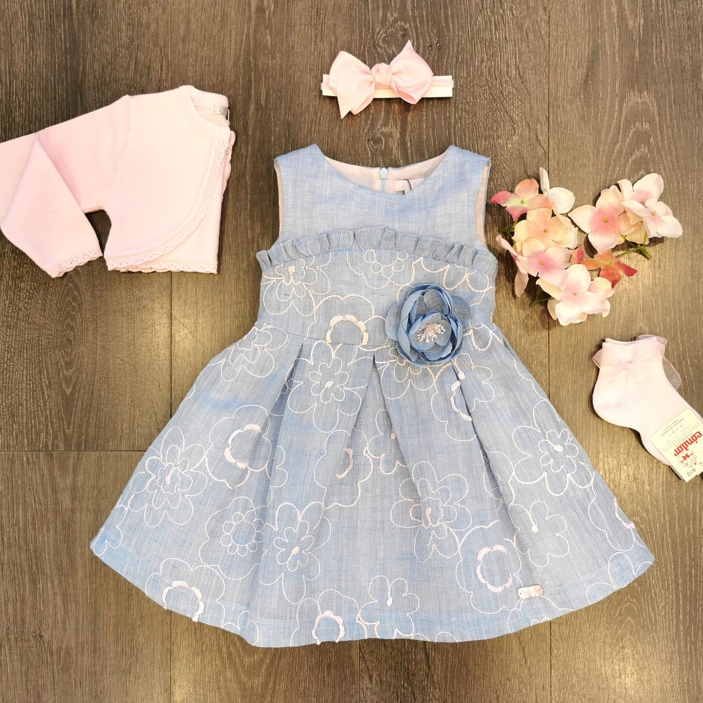 Abito Cerimonia Bambina nei colori azzurro e rosa, l'abito è perfetto per una cerimonia
