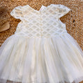 Un abito da battesimo elegante e delicato, perfetto per accompagnare la tua bambina in un giorno così speciale. Il corpino panna, ricamato con finezza, si abbina a una soffice gonna in tulle vaporoso che crea movimento e leggerezza. Un piccolo fiocchetto in raso impreziosisce il punto vita con un tocco discreto e romantico. Le maniche corte completano un look essenziale ma raffinato, ideale per cerimonie primaverili o estive. Una scelta dolce e curata per mamme che amano la semplicità con stile.