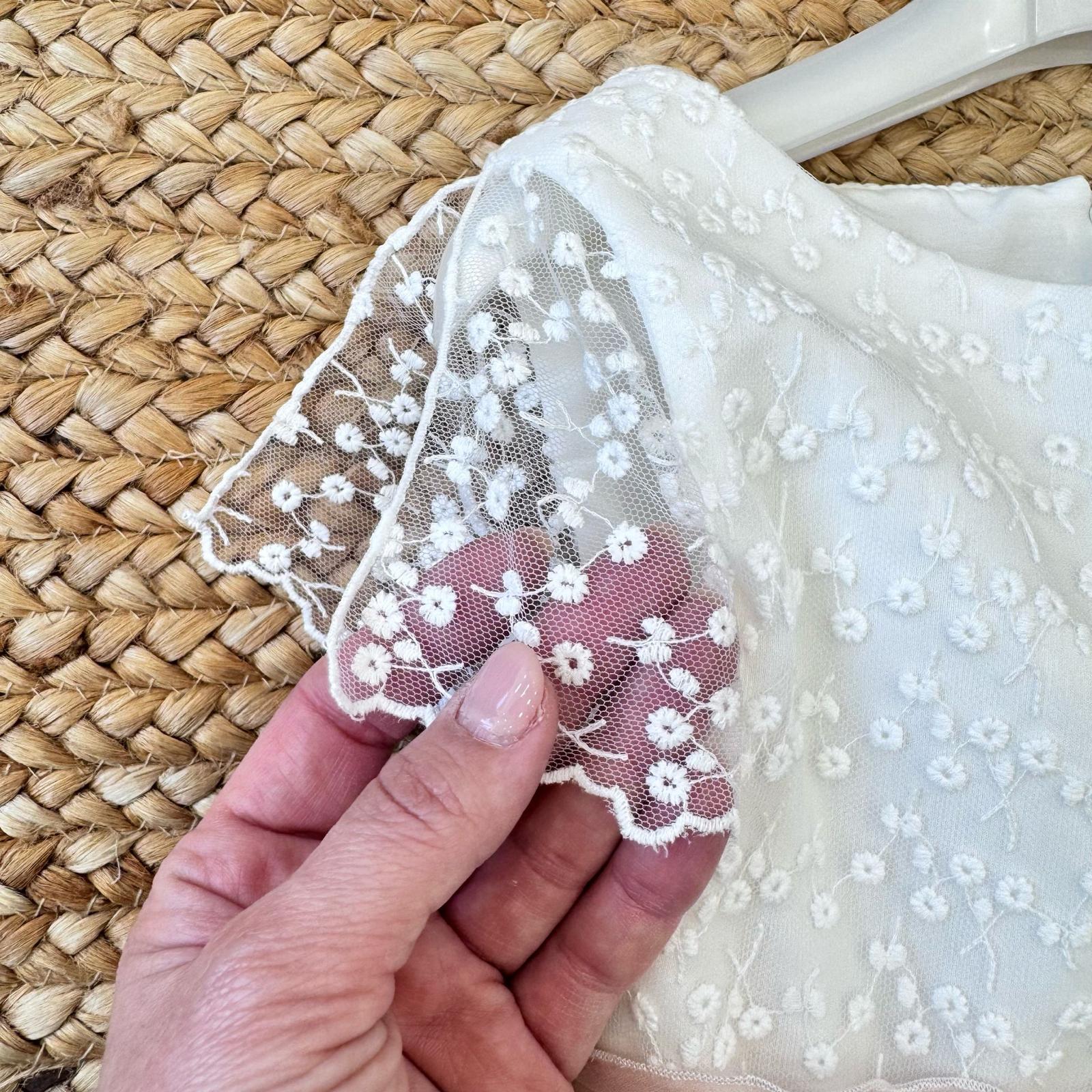 ✔ Maniche corte in tulle ricamato, delicate e romantiche