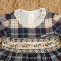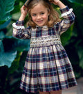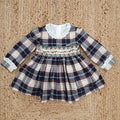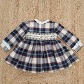 Abito bambina natalizio scozzese blu e beige con ricamo