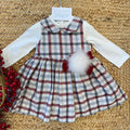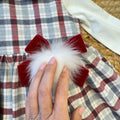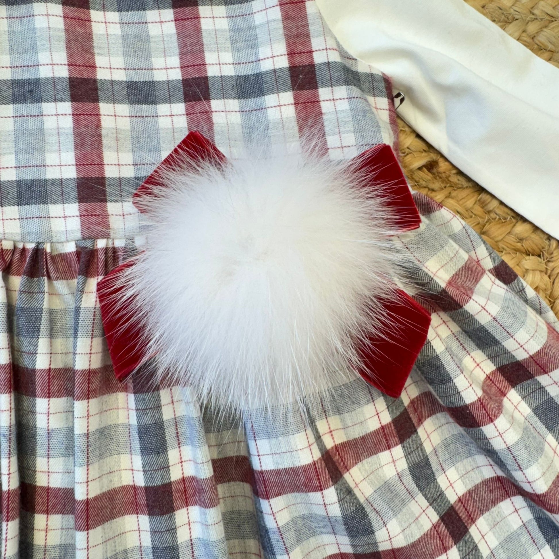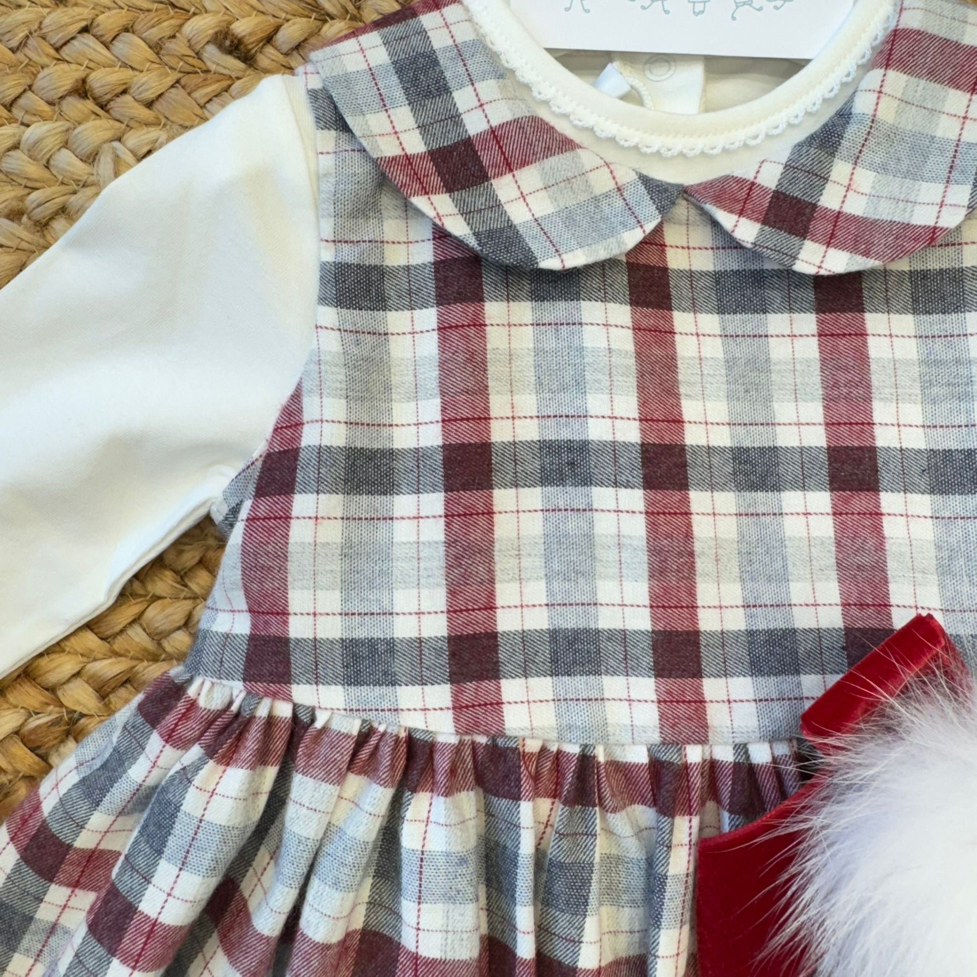 Abito natalizio bimba scozzese con fiocco velluto e pon pon