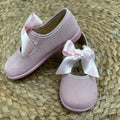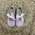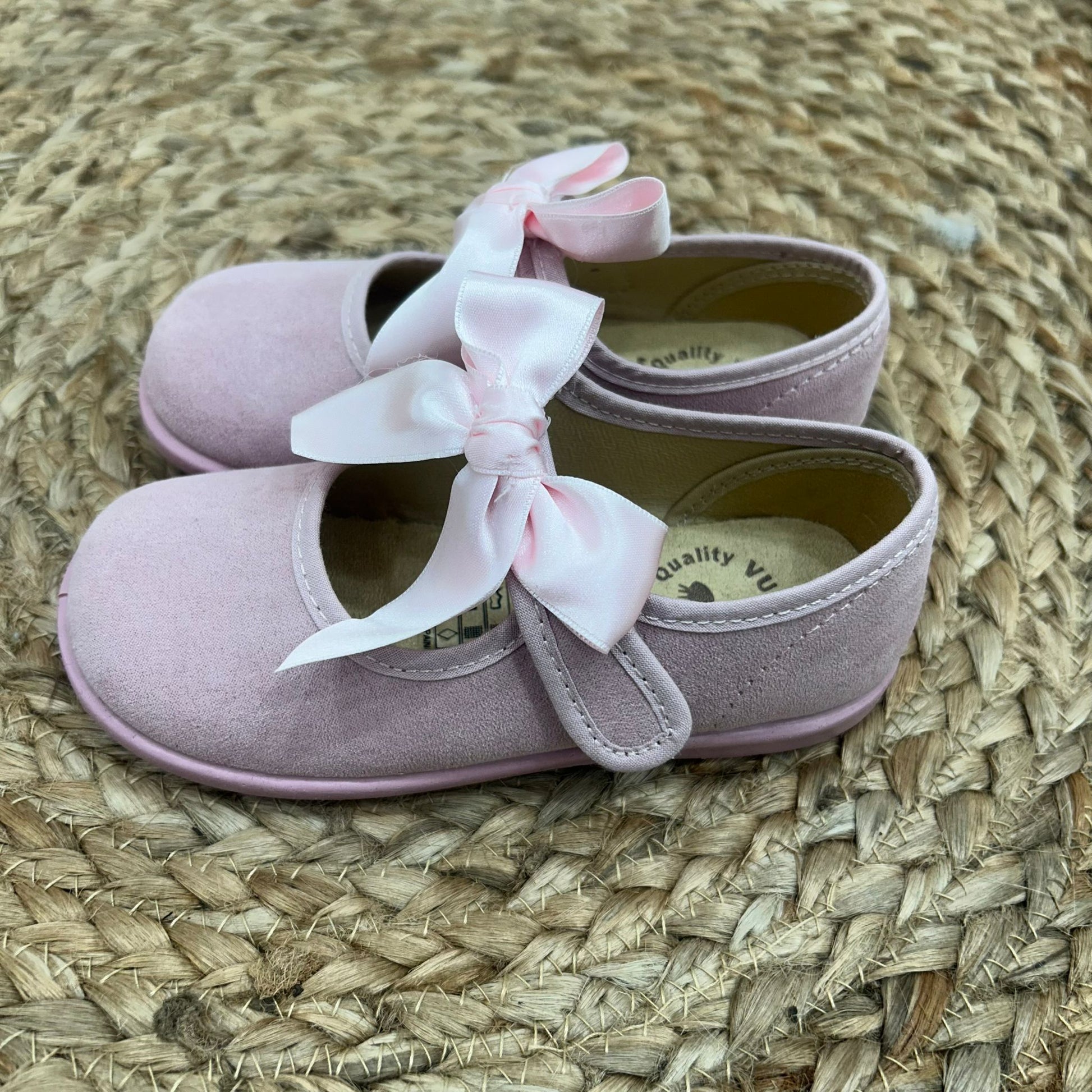 Dolcissime ballerine in morbido velluto rosa con grande fiocco in raso tono su tono. Morbide, leggere e confortevoli, ideali per completare gli outfit invernali con un tocco elegante e delicato. Perfette per cerimonie, feste o semplicemente per sentirsi speciali ogni giorno.