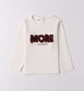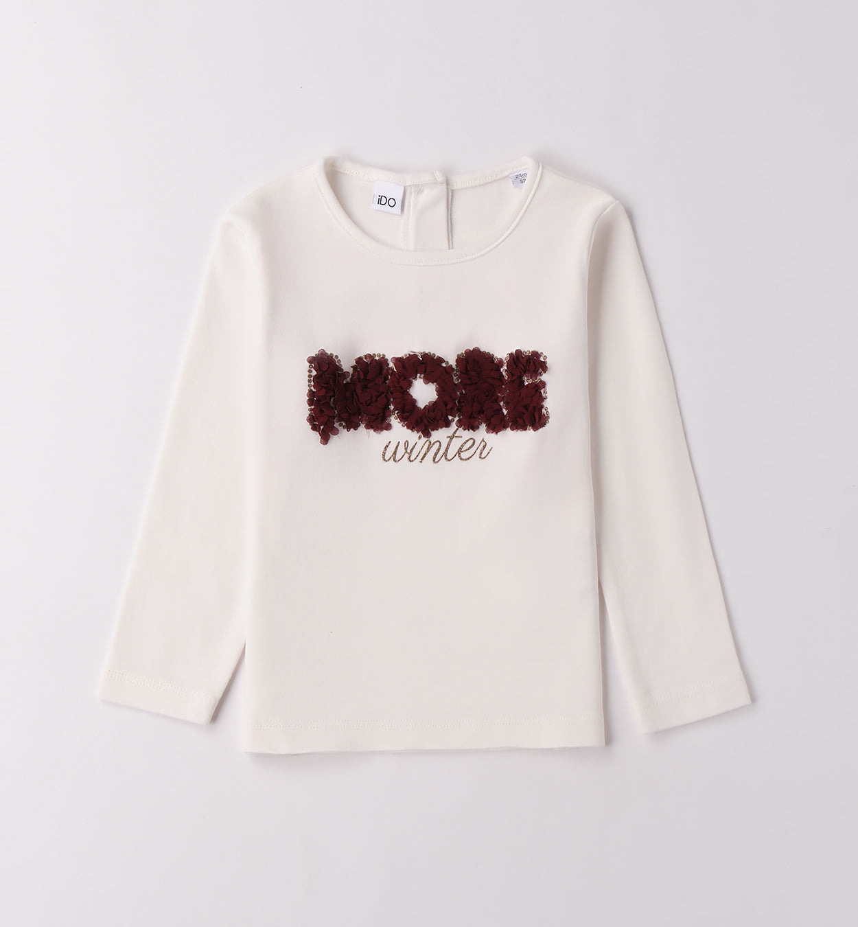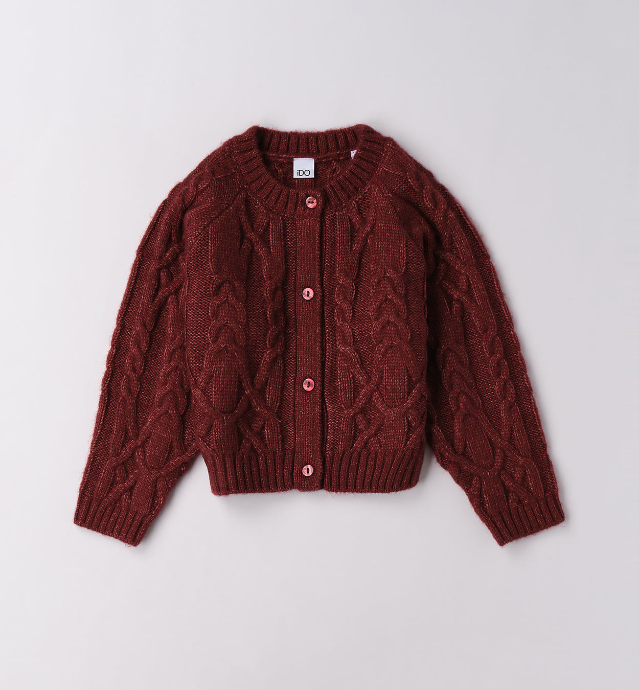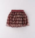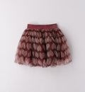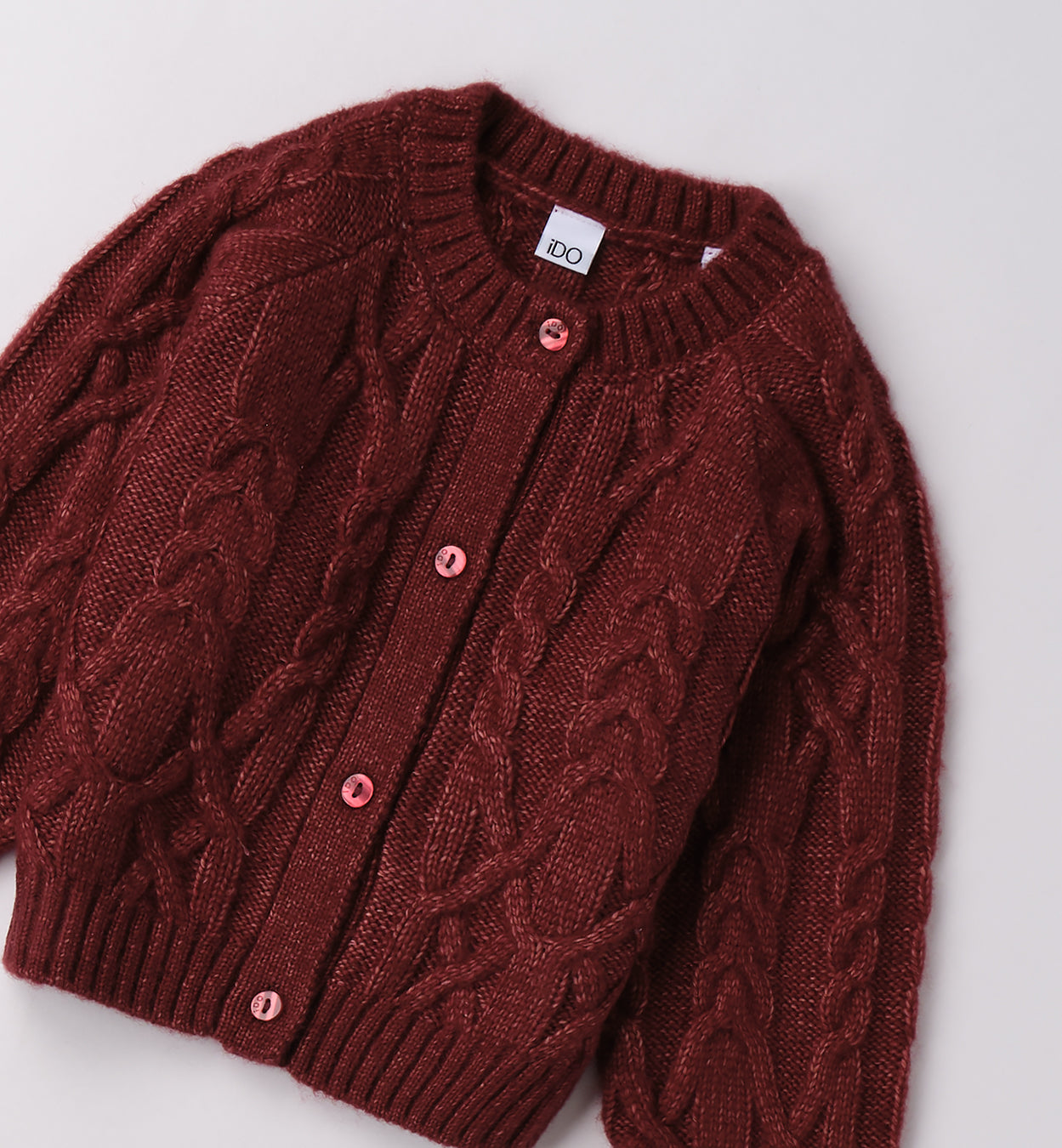 Romantico completo bambina con t-shirt bianca stampata, cardigan in maglia bordeaux e gonna in tulle bordeaux con cuori rosa a contrasto. Un outfit elegante e trendy, perfetto per cerimonie, feste e momenti speciali, ma anche per un look chic nel quotidiano.