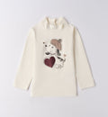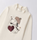 Completo bambina composto da t-shirt panna con cagnolino e cuore ricamato, cardigan in maglia trecce color panna e pantaloni in velluto a coste bordeaux. Un look caldo, pratico ed elegante ideale per la stagione autunnale e invernale, perfetto per scuola e tempo libero con stile.