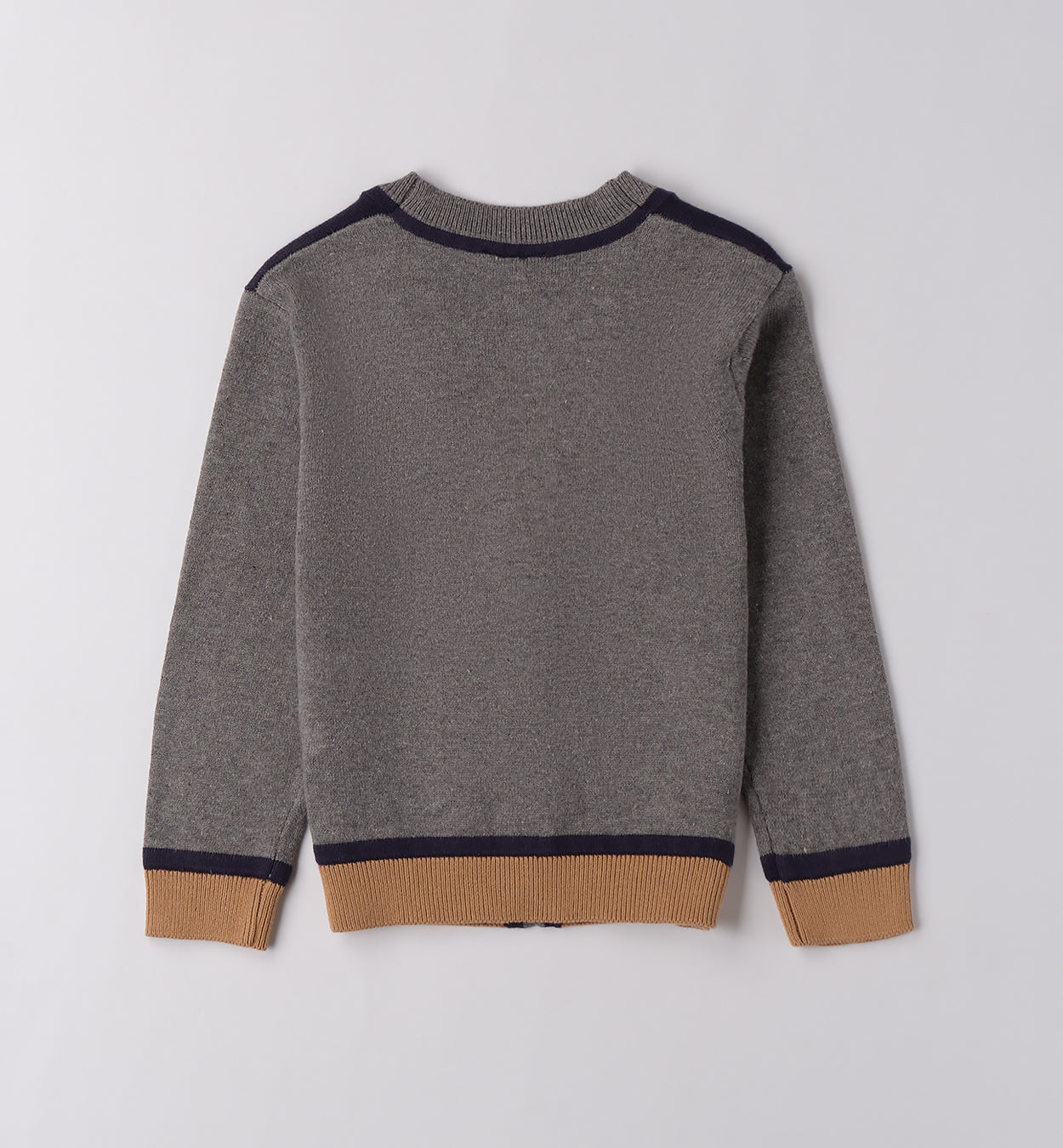 Cardigan bimbo in morbido cotone, rifinito nei toni blu navy, grigio e cammello. Un modello comodo e versatile, perfetto per la scuola e il tempo libero. Ideale da abbinare a t-shirt e camicie per un look pulito, caldo e curato.