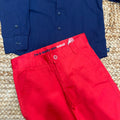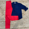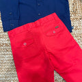 COMPLETO BAMBINO CAMICIA BLU E PANTALONE ROSSO FIRMATO BOBOLI