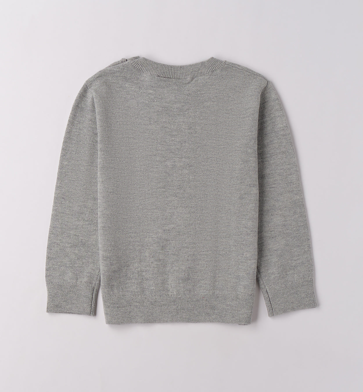 Completo bambino composto da maglia grigia a maniche lunghe con ricamo topolino e bottoni sulla spalla, abbinata a pantalone beige con coulisse regolabile. Un outfit pratico e allegro, ideale per scuola, giochi e momenti quotidiani.