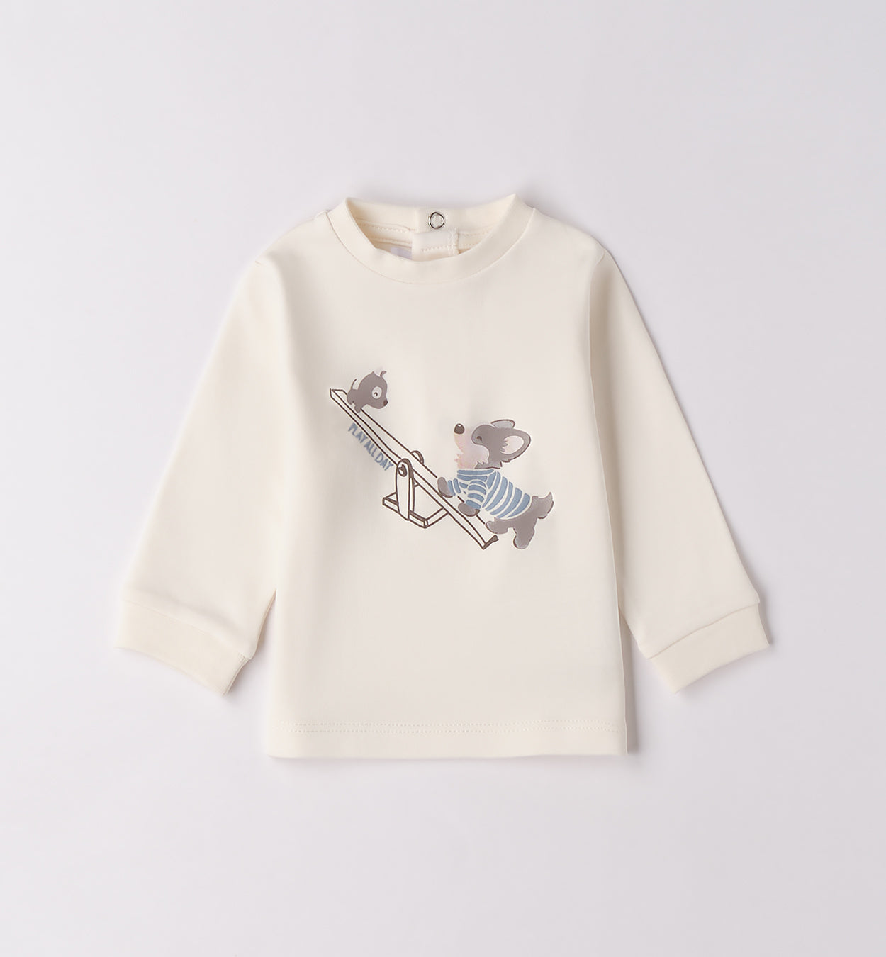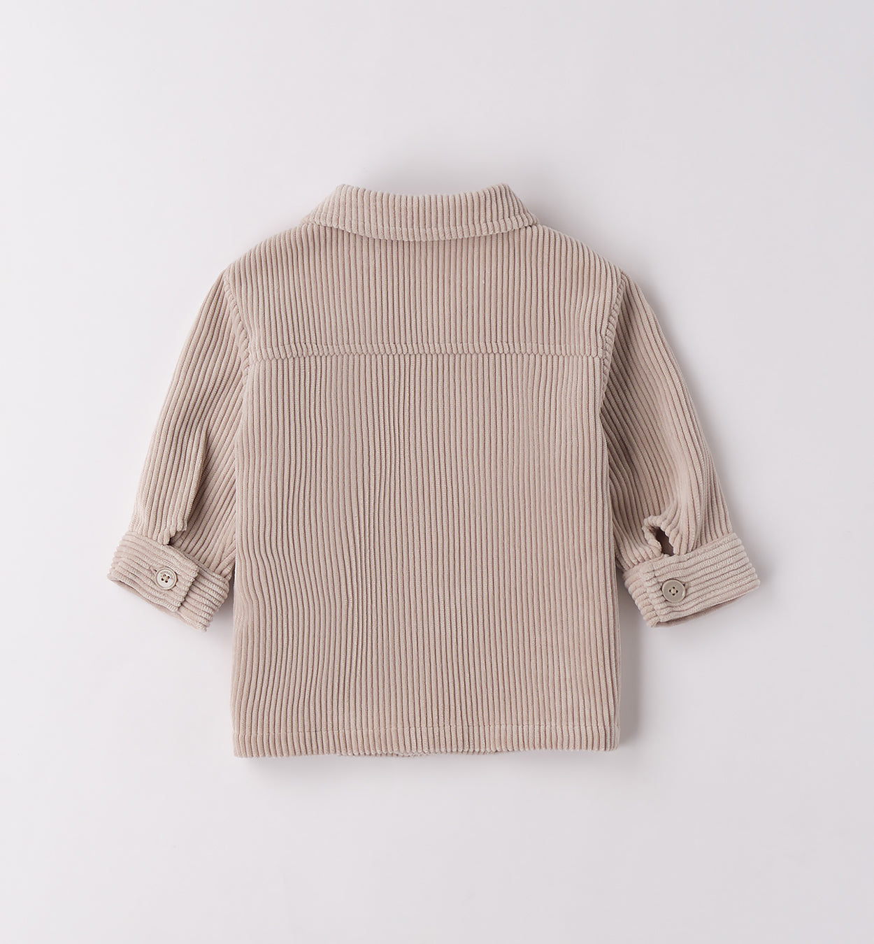 Completo bimbo composto da t-shirt bianca con stampa orsetti, camicia in velluto a coste beige con taschini e jeans blu scuro. Un look casual chic perfetto per scuola, tempo libero e uscite quotidiane, con il giusto equilibrio tra comfort e stile.