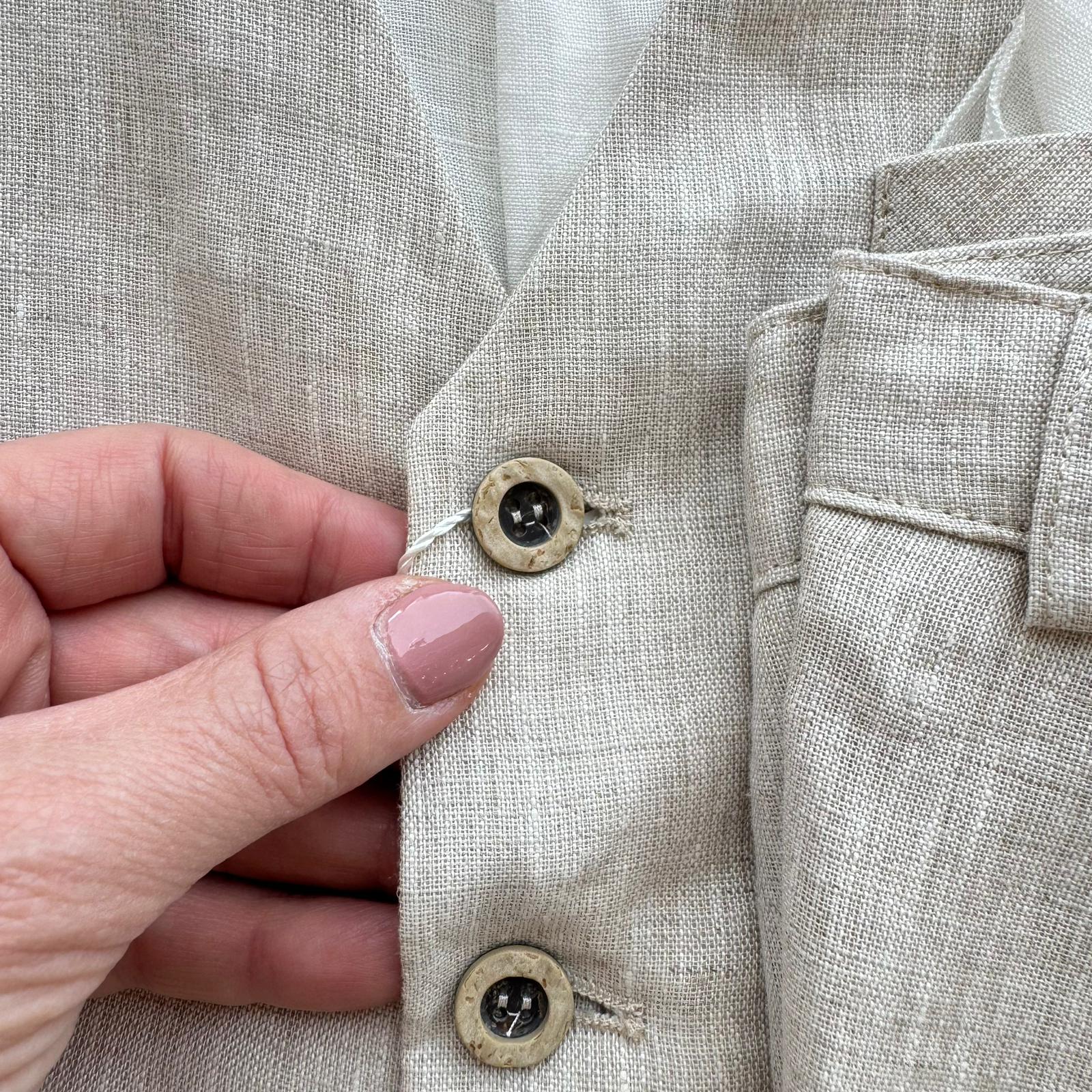 Un completo che racconta l’eleganza delle occasioni importanti: linee pulite, tessuto naturale e dettagli sartoriali studiati per vestire il tuo bimbo con stile e discrezione nei momenti che restano nella memoria. Completo in lino nei toni del beige naturale, composto da camicia chiara con collo coreano, gilet coordinato con bottoni effetto legno e pantalone abbinato. Un outfit raffinato e leggero, ideale per cerimonia o occasioni speciali estive. Vestibilità curata e gusto senza tempo.