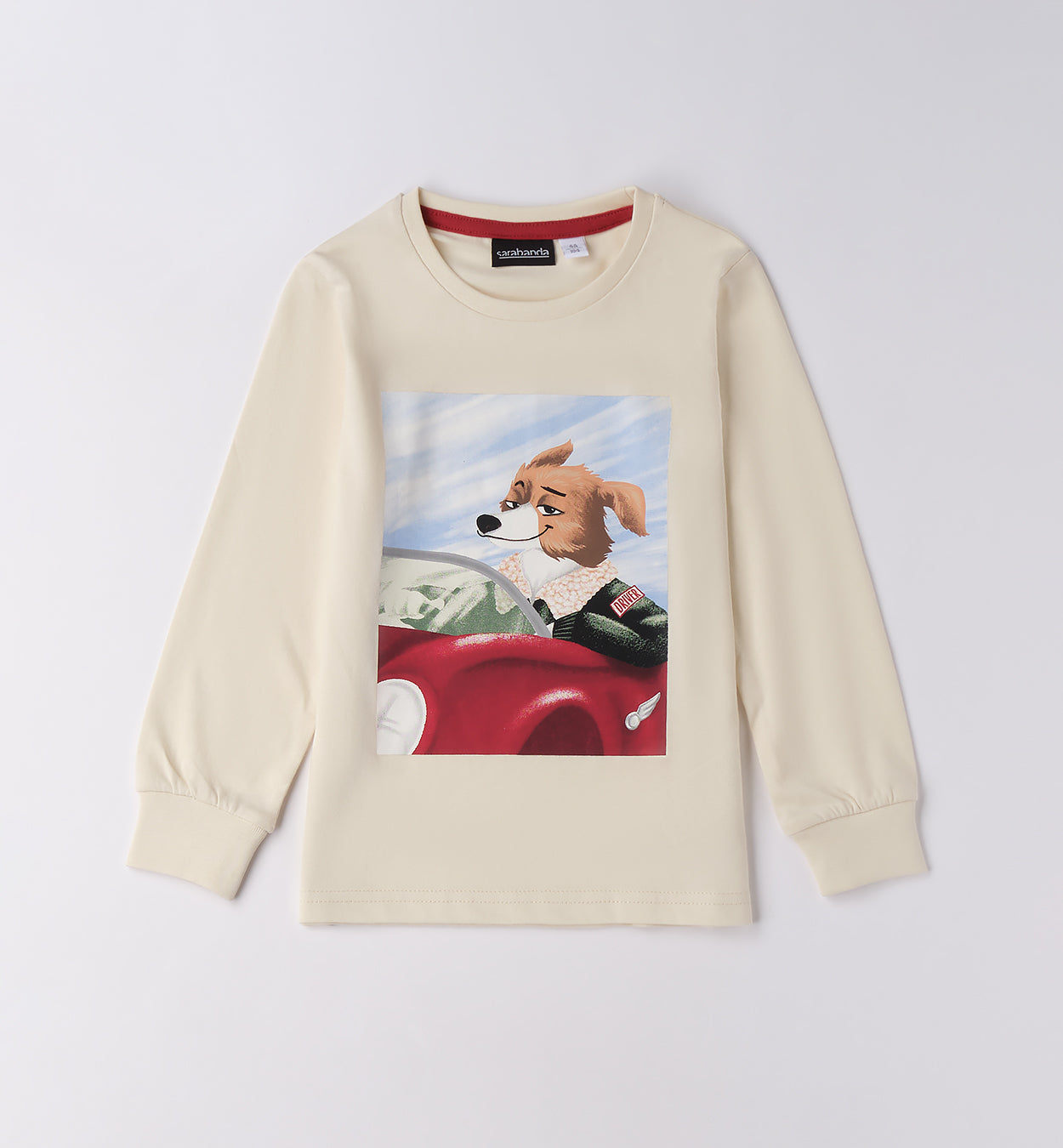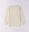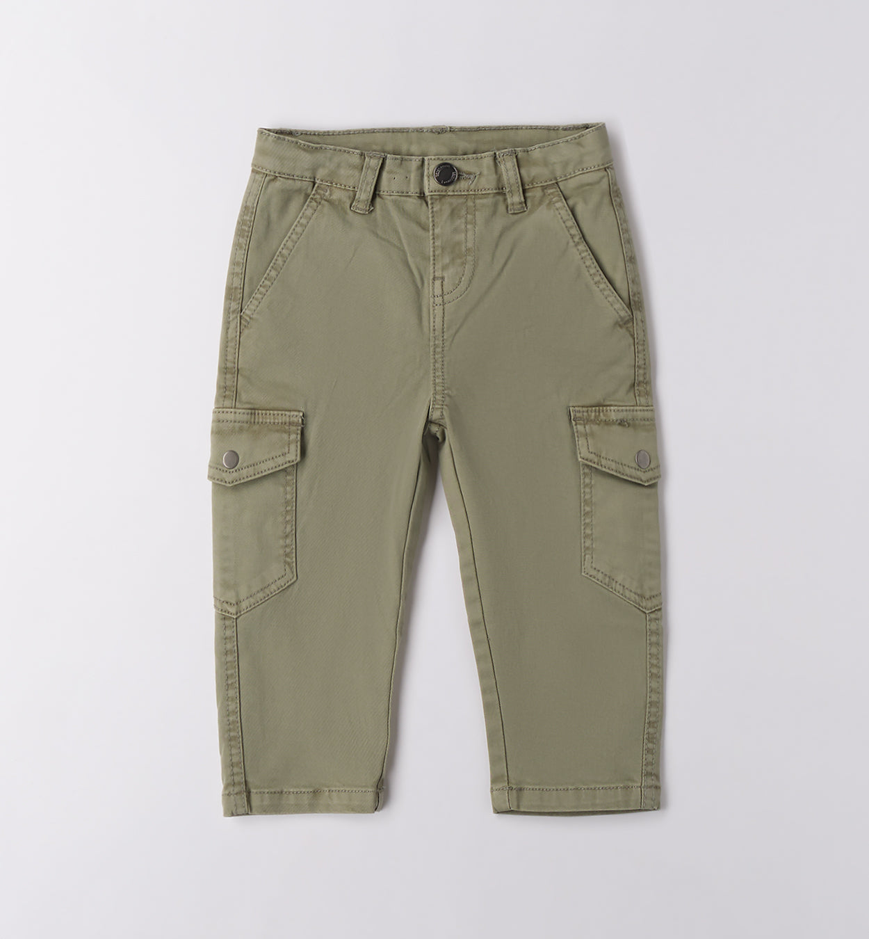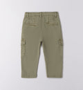 Completo casual chic bambino con camicia a quadri rosso, verde e blu, t-shirt stampata con canna e pantalone cargo verde salvia. Look moderno e pratico, perfetto per il tempo libero e le occasioni informali. Un coordinato versatile che unisce comfort e stile con dettagli di tendenza.