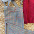 Completo natalizio bimbo con cardigan bordeaux e bretelle scozzesi