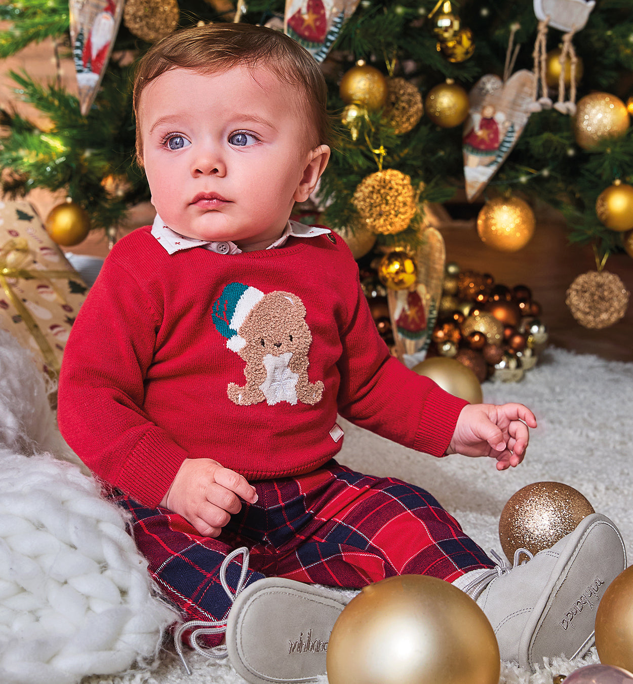 Completo natalizio bimbo rosso con orsetto e pantaloni scozzesi