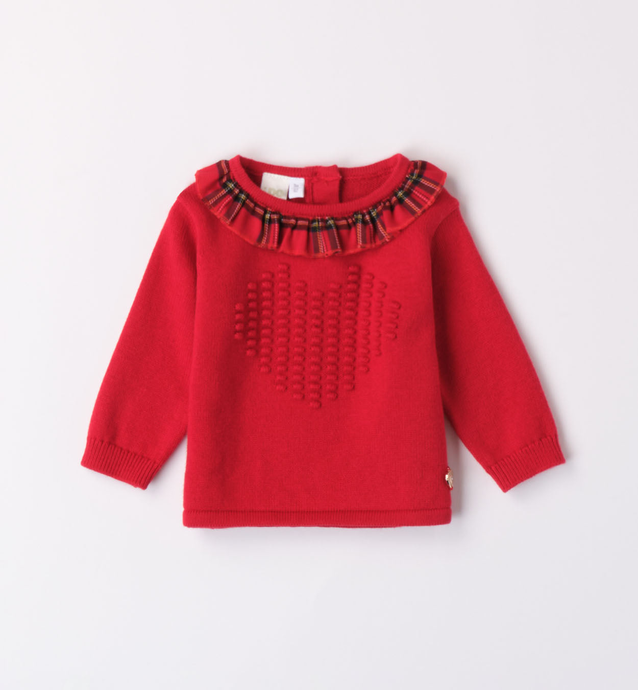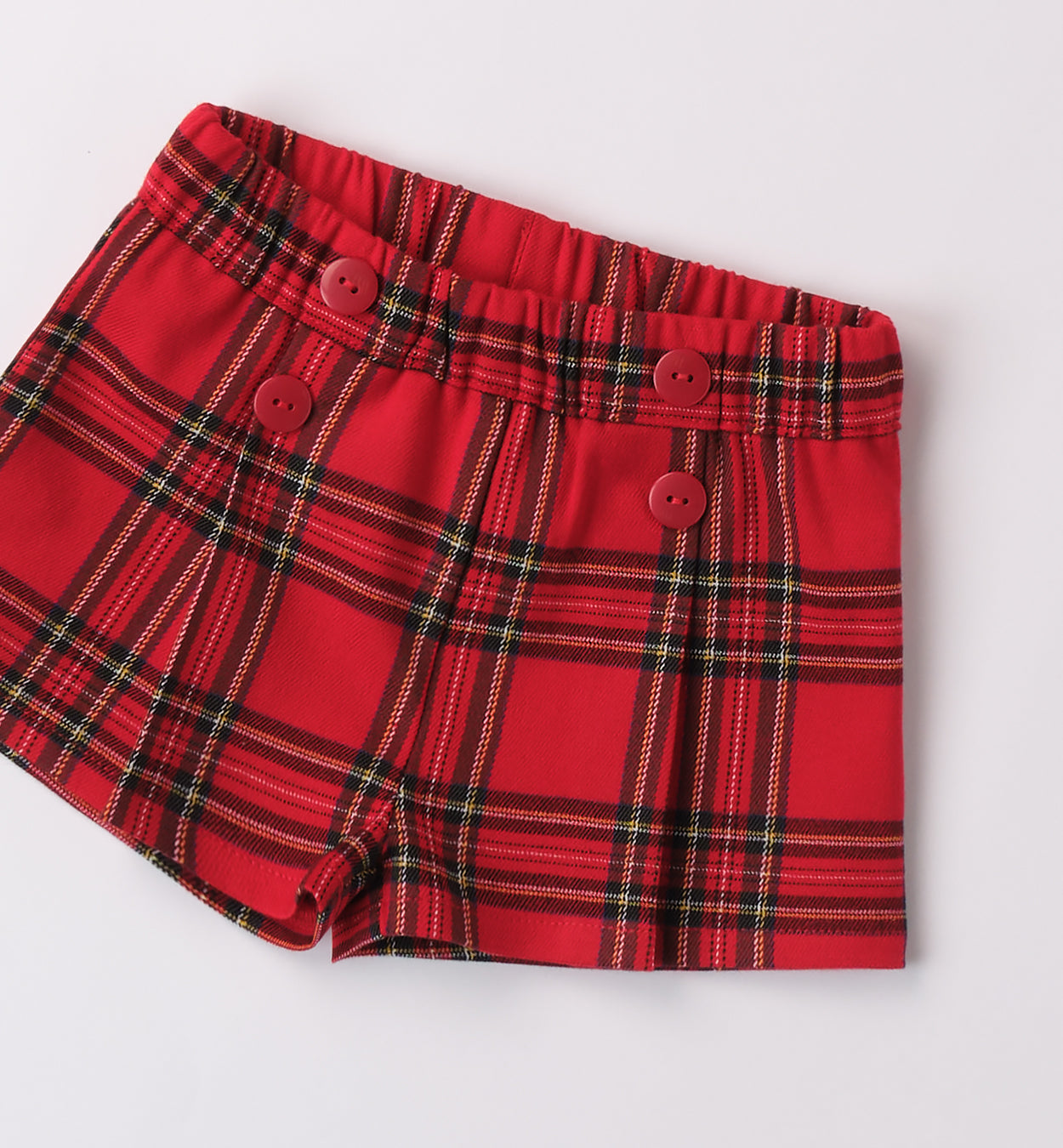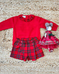 Questo incantevole completo della collezione natalizia è perfetto per le bambine che vogliono un look dolce e raffinato per le festività. Il maglioncino rosso è decorato con un delicato cuore lavorato a maglia al centro, che dona un tocco di tenerezza e stile. Il colletto con volant in tessuto tartan aggiunge un dettaglio festivo e si abbina perfettamente agli shorts in tartan rosso, per un look armonioso e curato. Gli shorts sono arricchiti da bottoni decorativi che aggiungono un ulteriore tocco di eleganza. Questo completo è ideale per momenti speciali e scatti natalizi, offrendo comfort e stile per le piccole protagoniste delle feste.