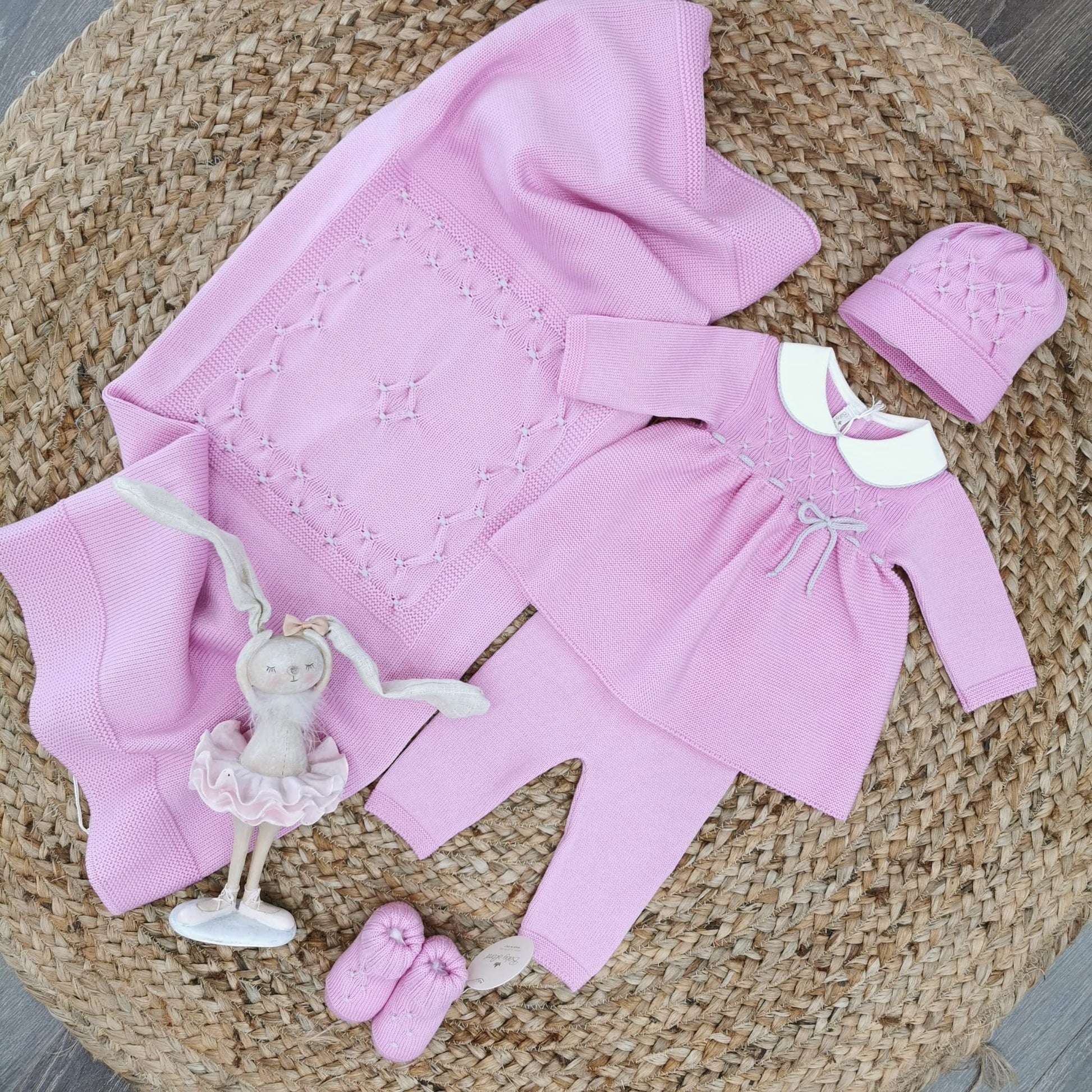 Coordinato In Pura Lana Di Alta Qualità, Morbido Caldo E Adorabile Dell'Azienda Artigiana Baby Lord. Il Colletto Del Coprifasce In Lana È Di Cotone. Il Punto Smock In Grigio Chiaro Nel Coordinato Colore Orchidea E In Bianco Nel Coordinato Colore Verde Aggiunge Un Tocco Elegante. Il Coordinato È Perfetto Per La Nascita In Inverno. Composizione: 100% Lana. I Capi Sono Custoditi In Un Sacchetto Di Organza.