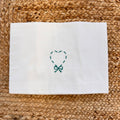 Lenzuolo per culla in puro cotone bianco, decorato con un delicato cuore verde ricamato a mano.Leggero ma avvolgente, è perfetto per la pelle delicata dei neonati.Un tocco di poesia per il lettino del tuo bambino, ideale per corredino nascita autunno/inverno.Made in Italy