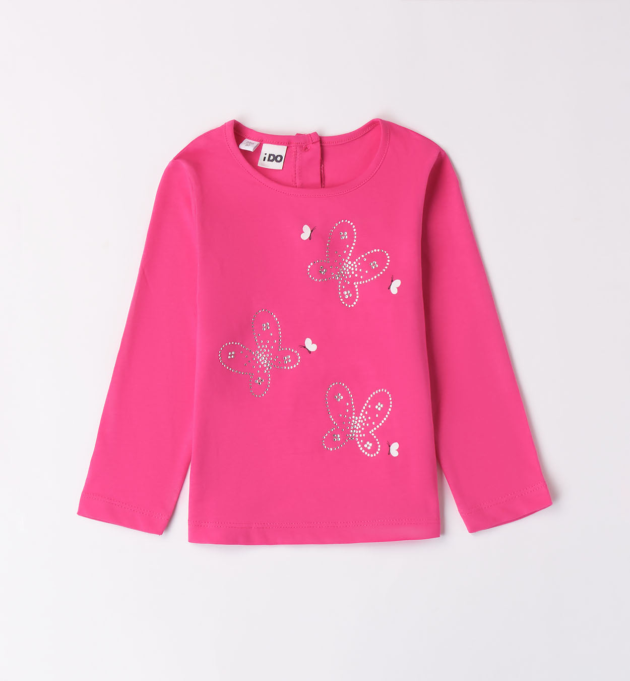 Una maglia vivace e comoda, ideale per il guardaroba quotidiano delle bambine. Il colore fucsia acceso illumina il look, mentre le farfalline con micro strass aggiungono un dettaglio dolce e luminoso perfetto per scuola, giochi e tempo libero.