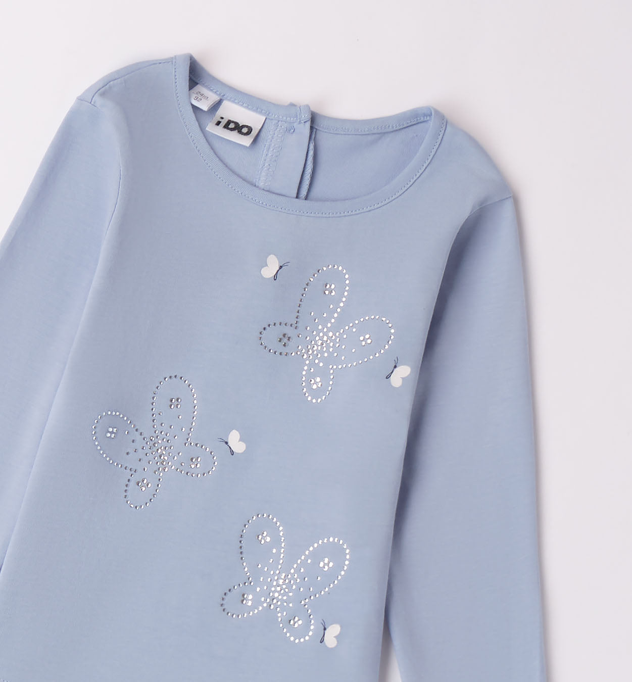 Una maglia morbida e confortevole, pensata per le bimbe che amano sentirsi libere nei movimenti. Il dettaglio delle farfalline applicate e luminose aggiunge un tocco dolce e giocoso, ideale per tutti i giorni.