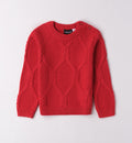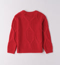 Maglione rosso bimbo in morbido tricot con elegante lavorazione a trecce romboidali. Il modello presenta bottoncini sulla spalla per facilitare la vestizione e polsini a costine che garantiscono una perfetta aderenza. Ideale per le feste di Natale e per completare un look caldo e raffinato nelle giornate invernali.