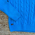 Maglione bimbo azzurro con lavorazione a trecce e collo alto a costine. Morbido, caldo e piacevole da indossare, dona un tocco raffinato ma moderno al guardaroba invernale. Perfetto per look casual o più eleganti.