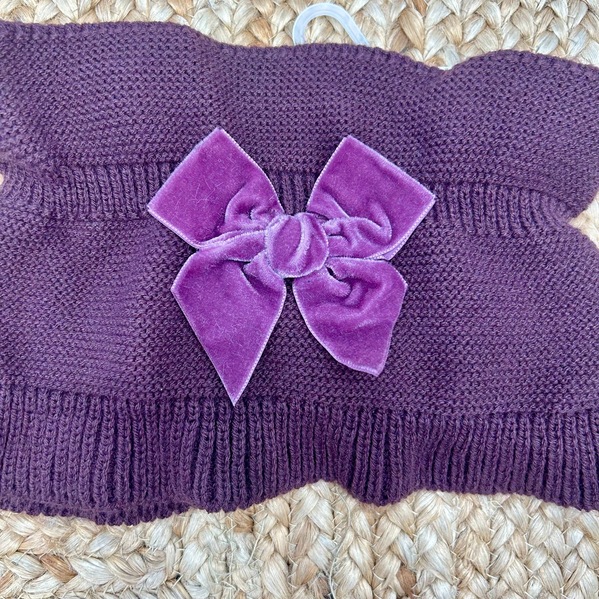 Scaldacollo viola scuro neonata Condor con fiocco in velluto