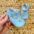 Scarpine perfette per il battesimo e le cerimonie estive! Questi sandalini da neonato in pelle celeste combinano eleganza e comfort per i piedini più delicati. Il design classico con trafori decorativi assicura traspirabilità, mentre la chiusura regolabile con fibbia garantisce una calzata perfetta. Realizzati in pelle morbida e flessibile, sono ideali per i primi passi o come accessorio per occasioni speciali come battesimi e matrimoni.