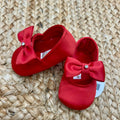 Scarpine da culla in raso rosso brillante