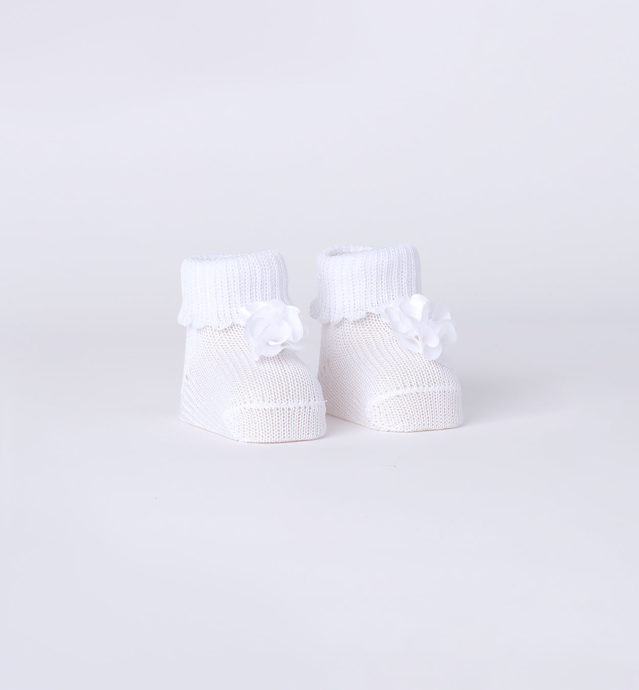 SCARPINE CULLA IN MAGLIA CON FIORE IN RASO – DISPONIBILI IN BIANCO E ROSA