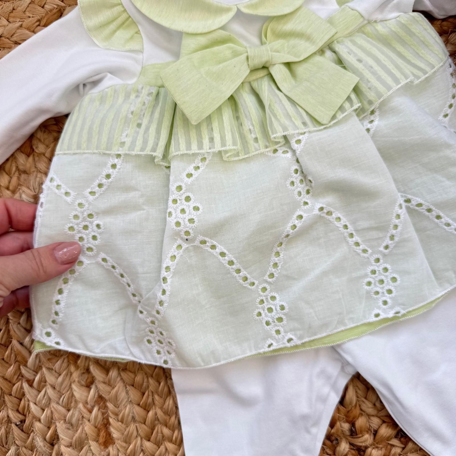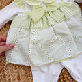 Un raffinato set nascita per neonata pensato per accompagnare i primi momenti della vita con eleganza e dolcezza. Questo completo corredino unisce dettagli delicati, tessuti confortevoli e tonalità verde salvia luminose che rendono l’insieme armonioso e molto raffinato.
