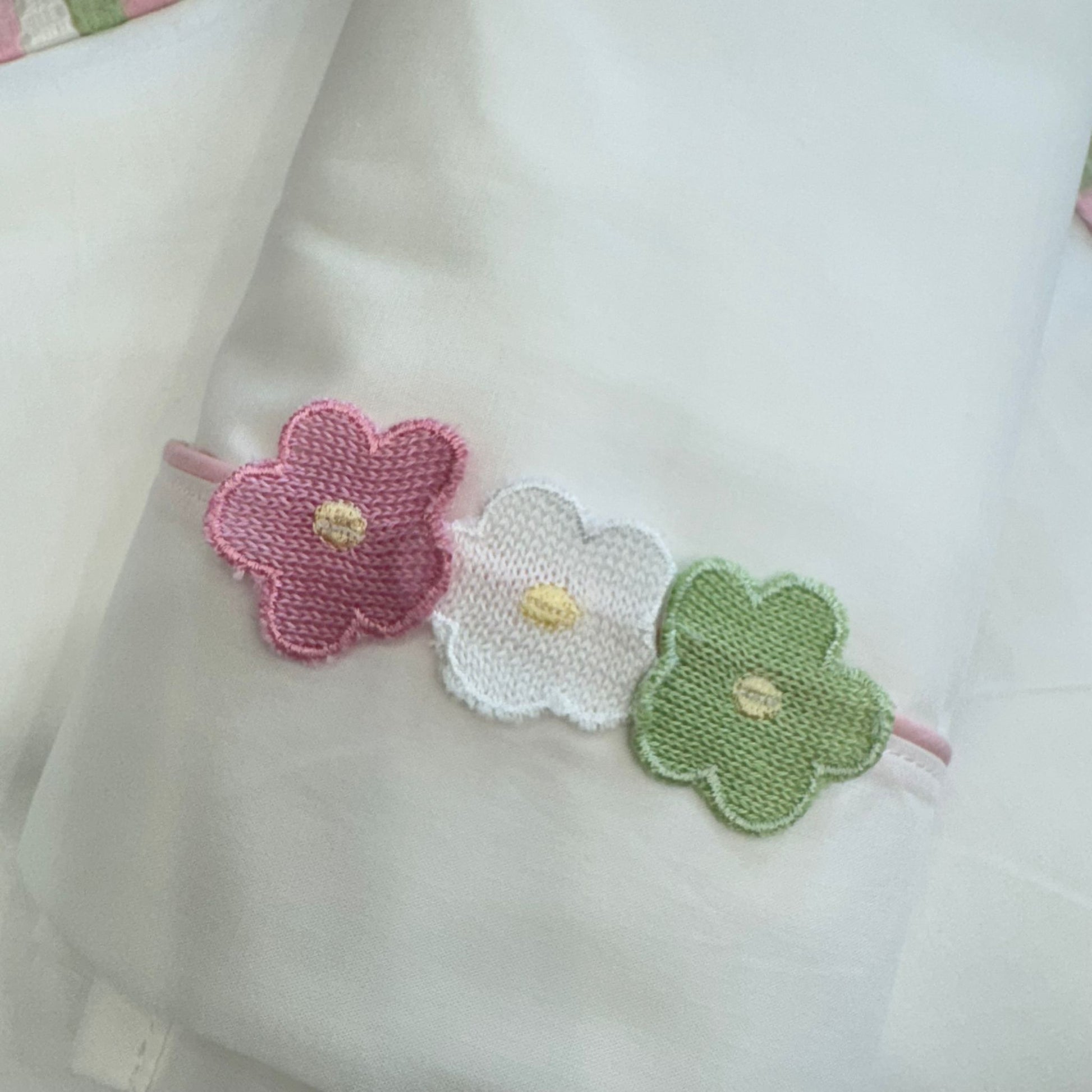 Bavetta con bordo rosa e fiore applicato