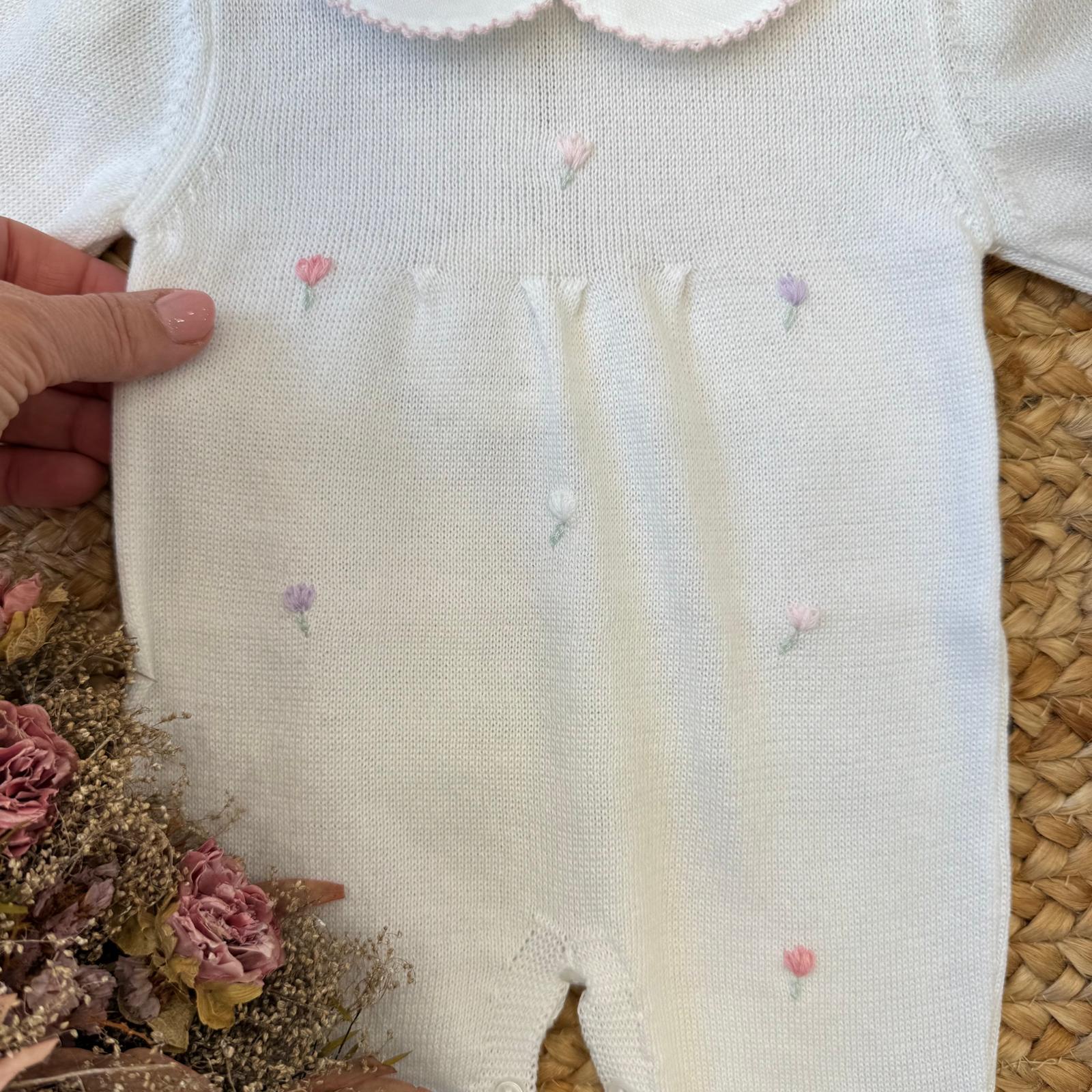 Set nascita neonata in 100% cotone con ricami floreali
