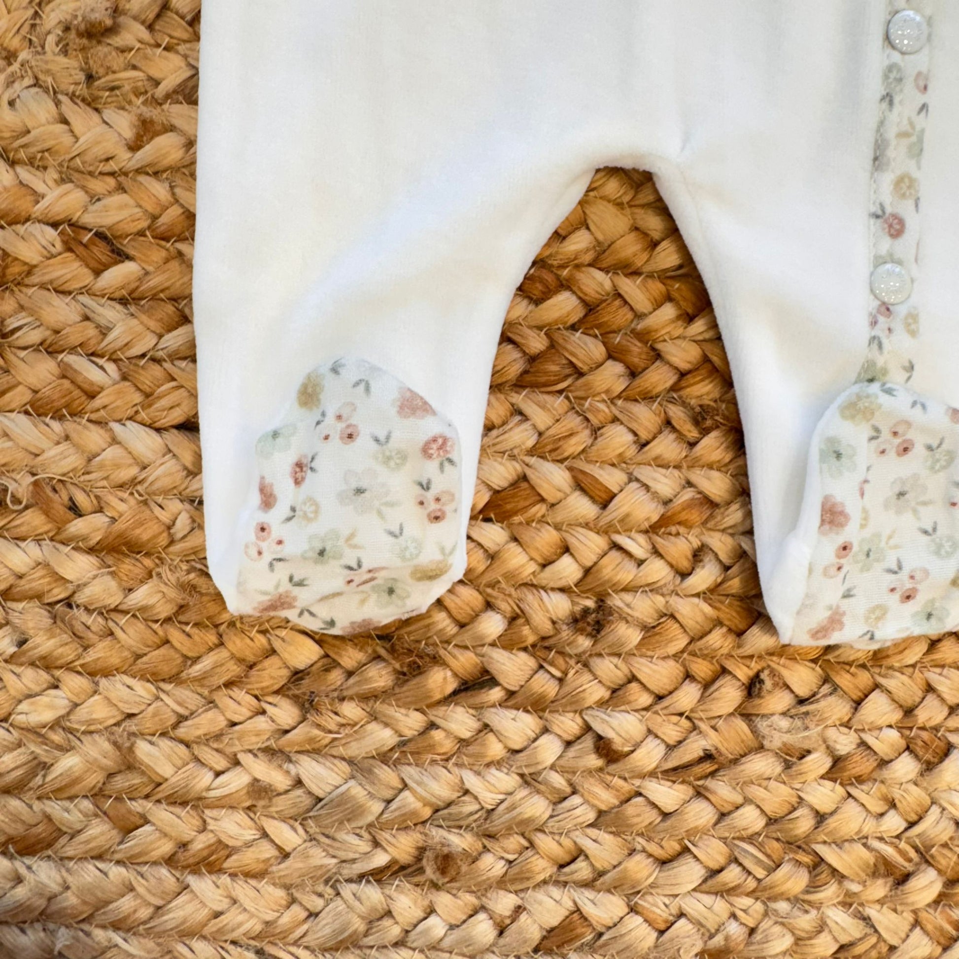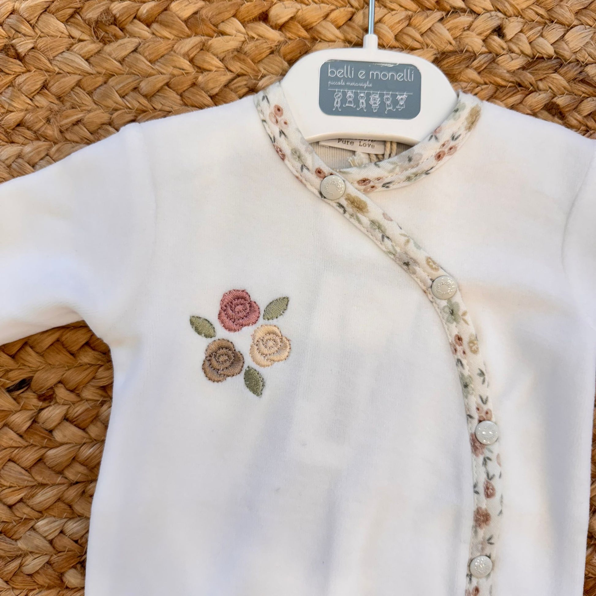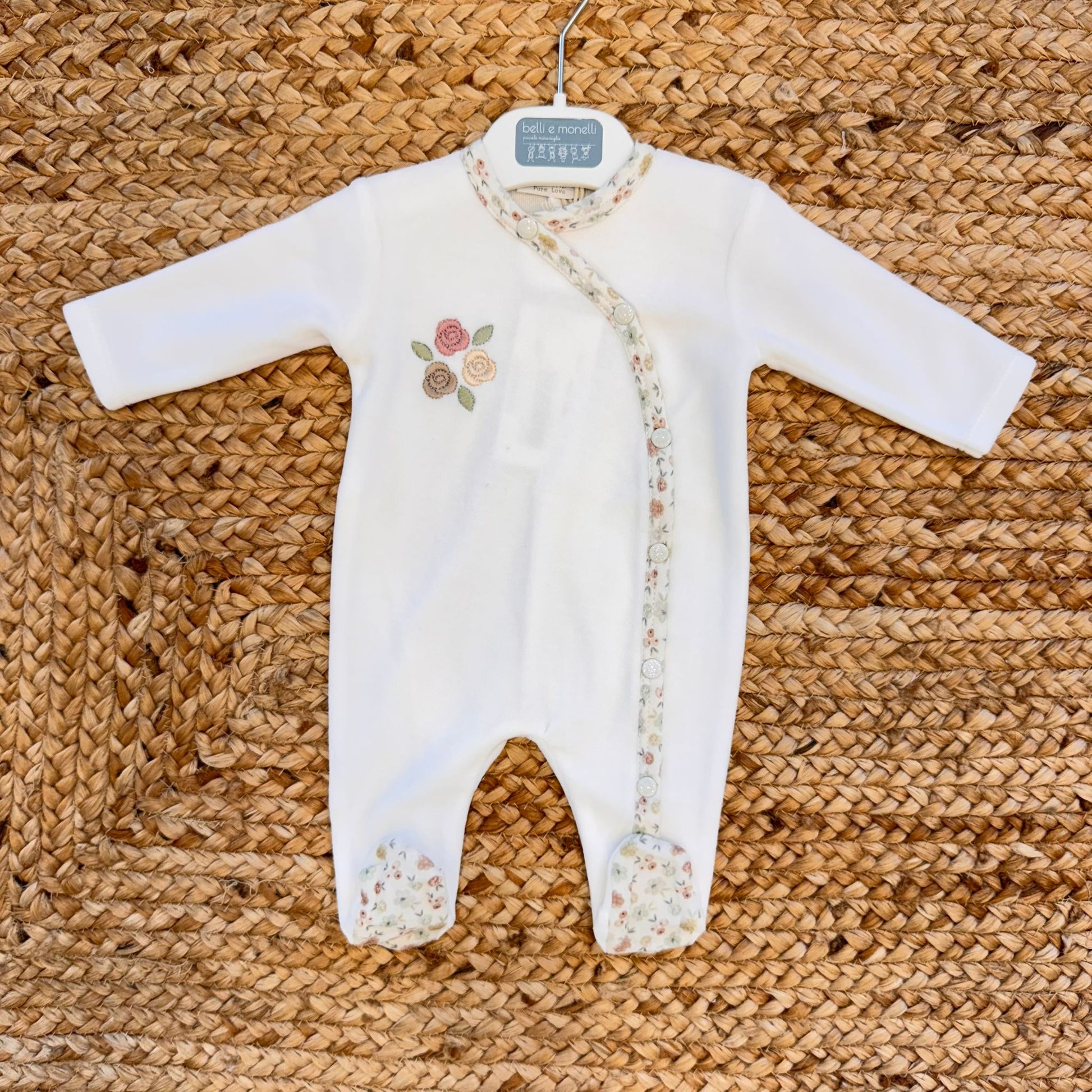 Tutina neonata ciniglia panna con rose ricamate