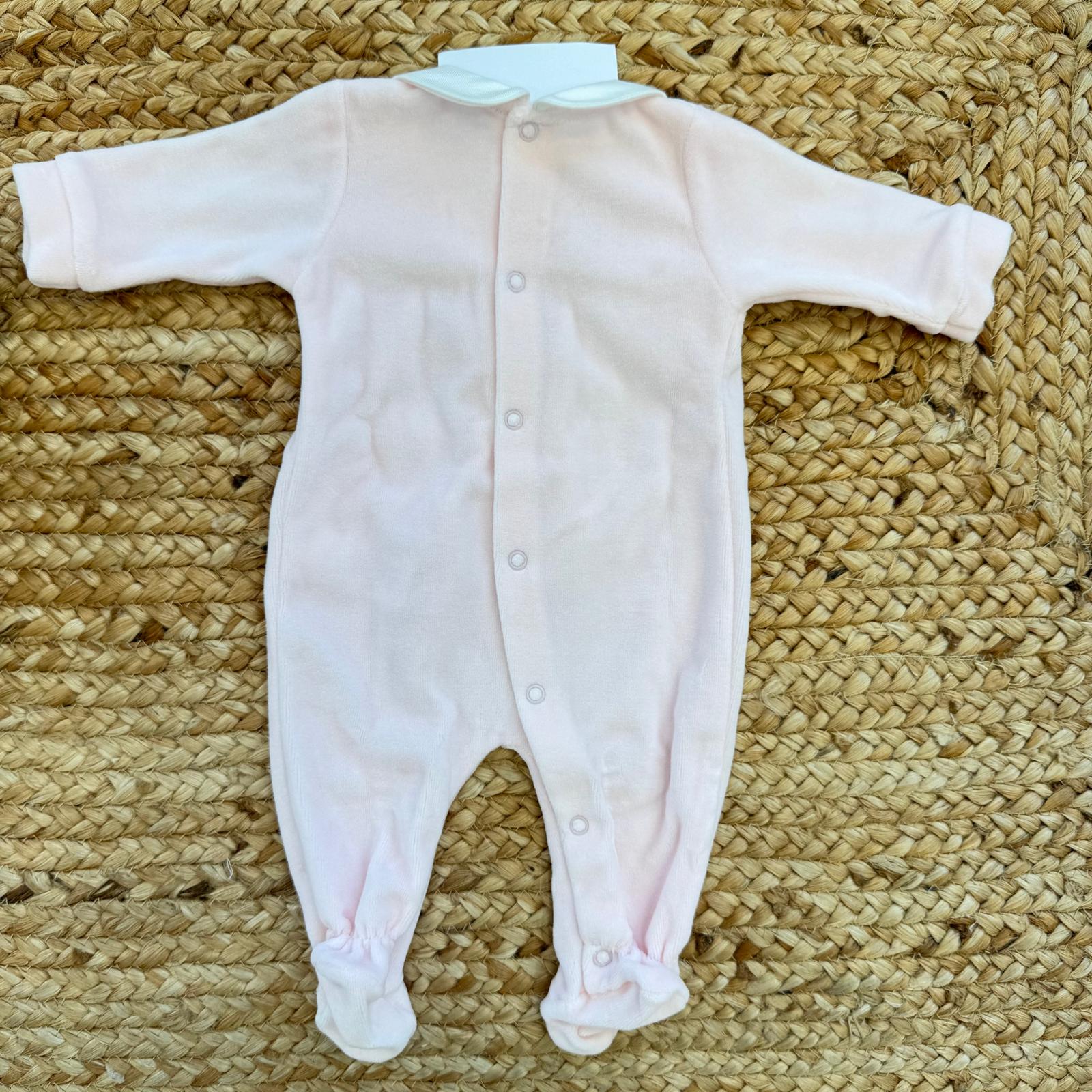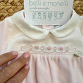 Tutina neonata ciniglia rosa con cuoricini ricamati