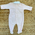 Dolcissima tutina per neonata realizzata in morbida ciniglia rosa, arricchita da delicati cuoricini ricamati sul corpetto. Il colletto bianco dona un tocco elegante e raffinato, ideale per corredino, set nascita e come prima uscita clinica. Pratica apertura con bottoncini sul retro e sul fondo per un cambio veloce. Un capo confortevole e prezioso, pensato per le prime coccole della tua bambina.