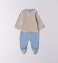 Tutina neonato in ciniglia beige e azzurro con orsetto